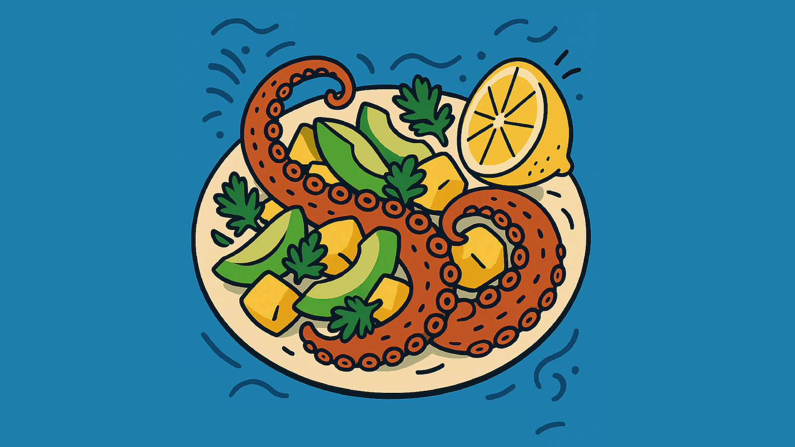 Tentacoli di Polpo con Avocado, Patate e Limone – Mare, Freschezza e Colore nel Piatto